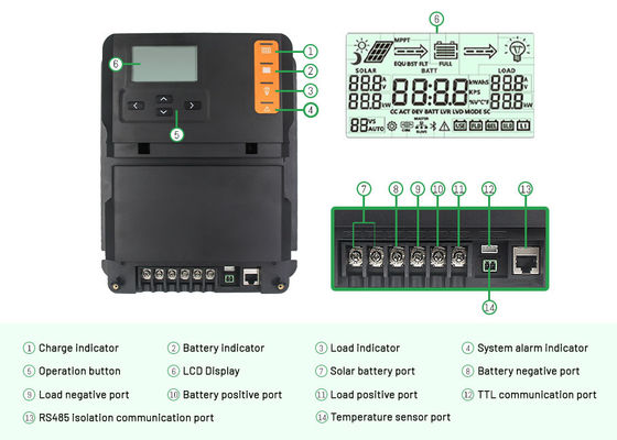 | الحد الأقصى لإدخال الطاقة الشمسية | 520 واط/12 فولت، 1040 واط/24 فولت |