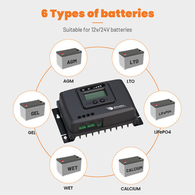 نحن نفهم أن كل مالك قافلة لديه احتياجات بطارية مختلفة لهذا السبب جهاز التحكم في الشحن الشمسي للمقطورة متوافق مع أنواع مختلفة من البطاريات، بما في ذلك AGM، GEL، WET، الكالسيوم، LiFePO4، LTO،والليثيوممع هذه المرونة، يمكنك اختيار أفضل بطارية لاحتياجاتك المحددة