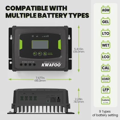 جهاز التحكم الشمسي KWAFOO 40Amp MPPT هو تصميمه على الجدار ، مما يسمح بسهولة التثبيت ومزايا توفير المساحة.جهاز التحكم مجهز بآليات حماية شاملة لحماية النظام الشمسي، بما في ذلك حماية الإفراط في الشحن، وحماية الدائرة القصيرة، وحماية القطبية العكسية.
