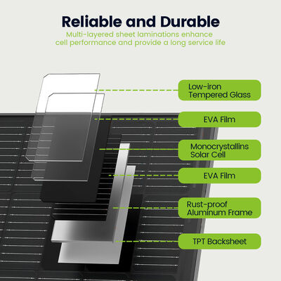 توفر اللوحة الشمسية السوداء بالكامل بقدرة 130 واط خرجًا كاملاً وقويًا يبلغ 130 واطًا في ظل الظروف القياسية (STC)، تجمع هذه اللوحة الشمسية السوداء بالكامل بين توليد الطاقة القوي والمظهر الجمالي الأنيق والموحد. يضمن إطارها الأسود بالكامل القوي بسمك 35 مم المتانة في مواجهة العوامل الخارجية والضغوط الميكانيكية، بينما يعزز التصميم الأسود على الأسود السلس المظهر المرئي دون المساس بالأداء. تم تصميمها لتحقيق التوازن بين المظهر المذهل والطاقة الموثوقة، وهي مثالية للمركبات الترفيهية، وأسطح التخييم، وأي إعداد يهم فيه كل من الكفاءة والمظهر.